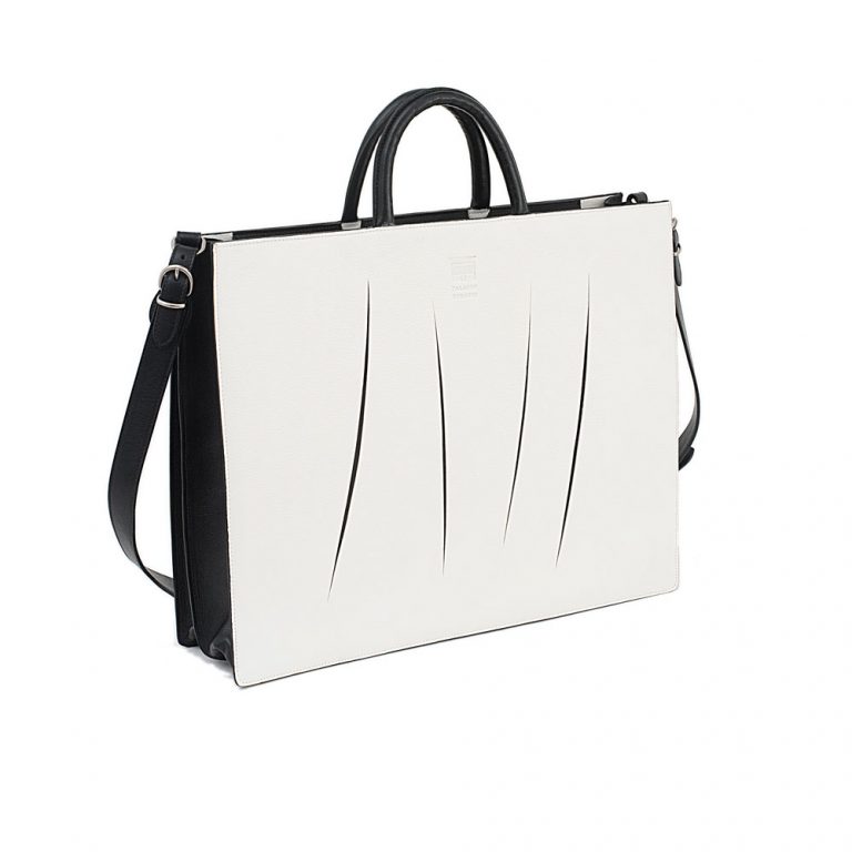 Jul202018 Art Bags The Cut Briefcase For Lucio Fontana 2018 Inspired by the famous “cuts” by Lucio Fontana, the white leather bag with black shoulder straps was created by Il… Read more