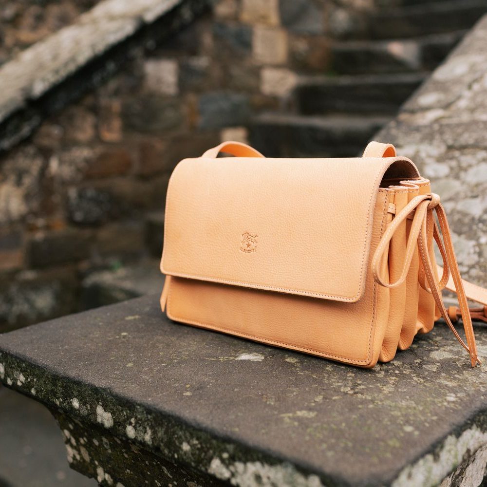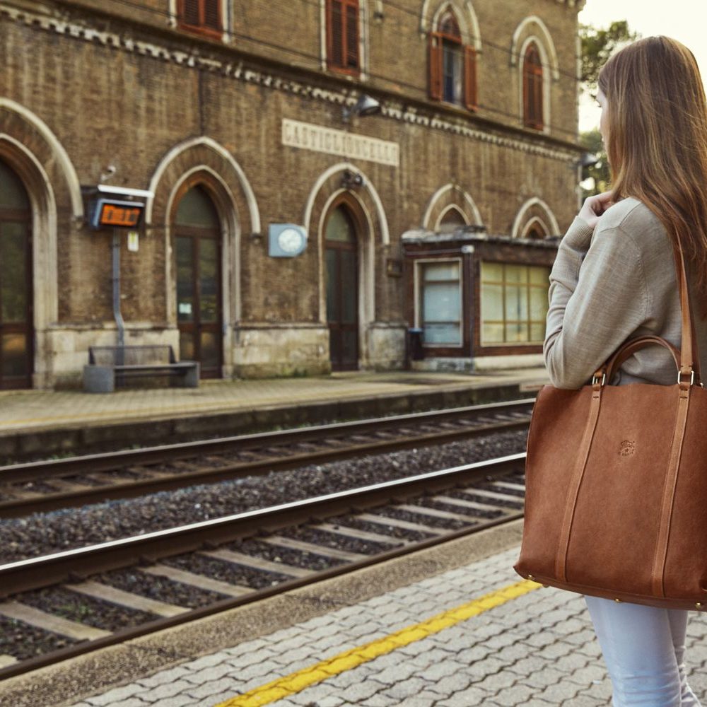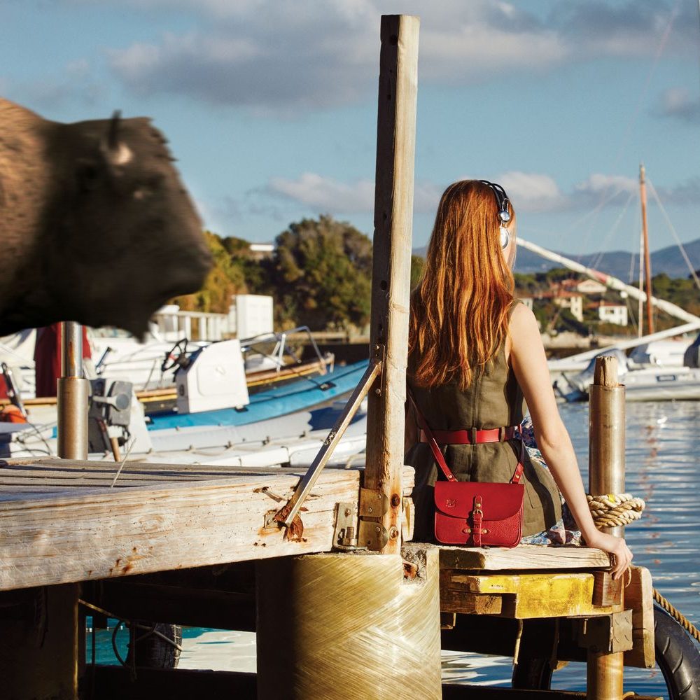 Una borsa, degli stessi colori della terra che circonda questa ragazza, anche lei alla scoperta delle colline del Chianti. I maestosi cipressi la scortano e i bisonti sembrano suggerirle di continuare l’avventura. La Caramella, una delle borse più iconiche del Bisonte è la perfetta compagna di viaggio.Acquista