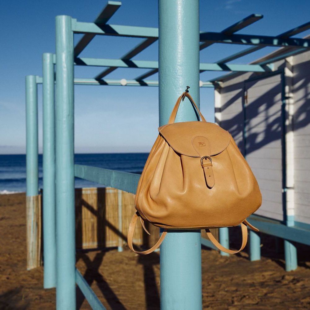 Se a Firenze non facessimo borse di pelle dal 1970, questo zaino potrebbe sembrare fatto di sabbia. La stessa che lo circonda, insieme all’azzurro di uno stabilimento deserto e al blu del mare. Acquista