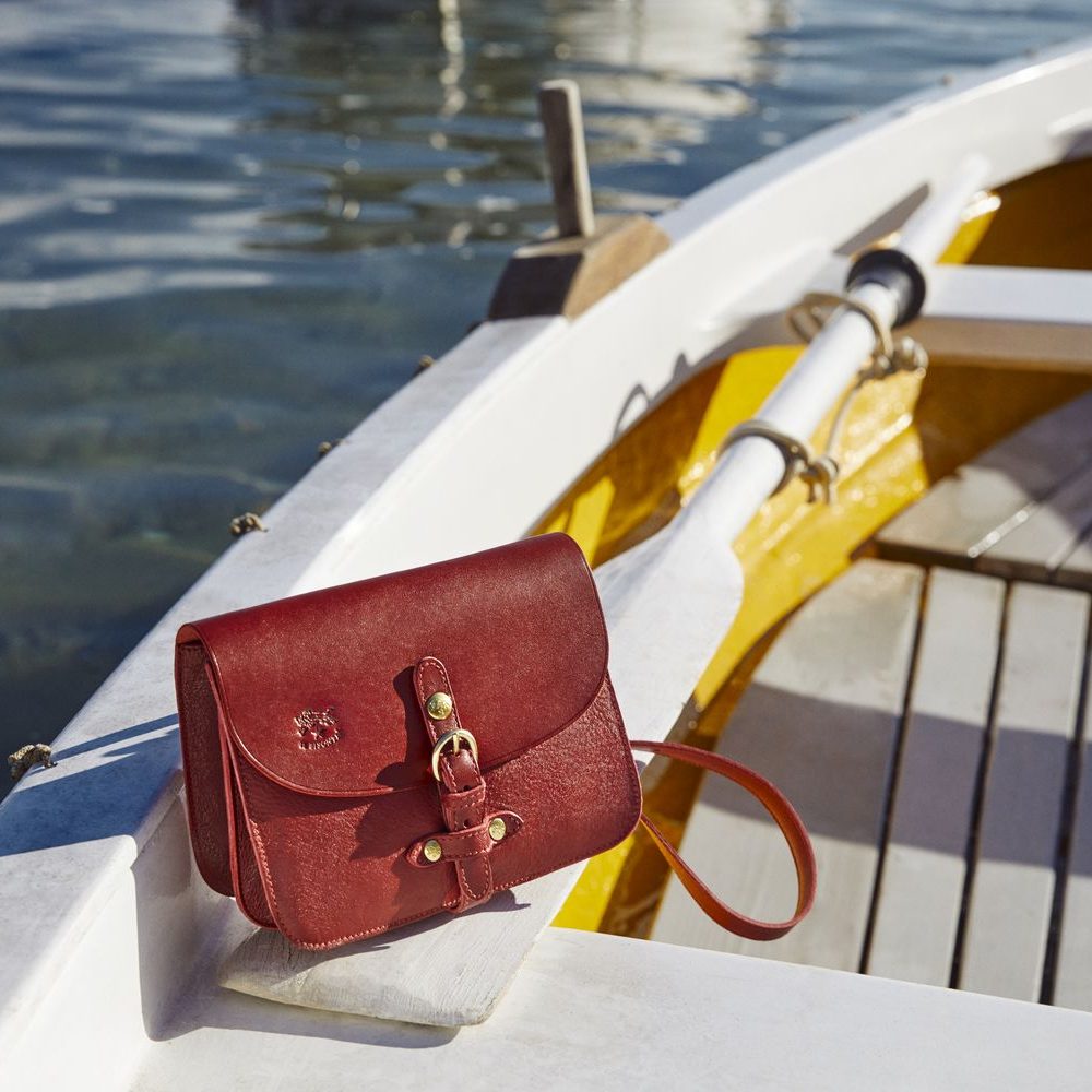 Una piccola borsa per una grande avventura. Il bianco della barca e l’azzurro dell’acqua ispirano un’atmosfera da film hollywoodiano anni ‘50. Acquista
