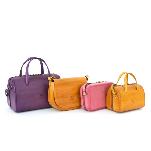Ognuna delle nuove borse e dei nuovi accessori di piccola pelletteria è un sorprendente omaggio alla tradizionale anti-convenzionalità che rende uniche e inconfondibili le creazioni de Il Bisonte. Nella collezione trova come sempre ampio spazio la vacchetta a concia vegetale, materiale di elezione del brand, presentata anche in una sorprendente re-invenzione extra-leggera e morbida come nappa e in una calda versione invecchiata e vissuta. Ritornano i tessuti rigati, altra icona del brand già dai primi Anni Settanta, ed è un cotone misto lino d’archivio a dettare la palette colori della proposta della prossima stagione dedicata alla donna, declinata sulle nuances speziate del cumino, del curry, del sumac e del pepe rosa.