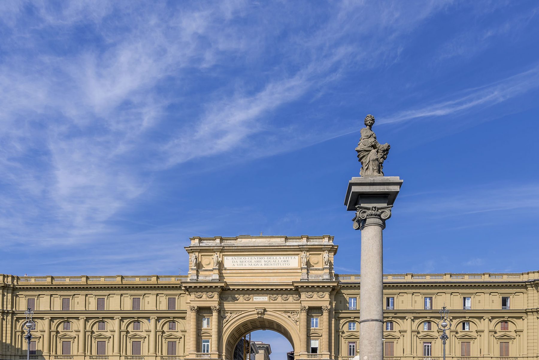 At the start of the Renaissance in the exact center of Florence —Piazza del Mercato Vecchio to be precise – is where it happened. A column was adorned with a statue sculpted by Florence’s great artist Donatello of a woman carrying a cornucopia full of fruit: la Dovizia, abundance.