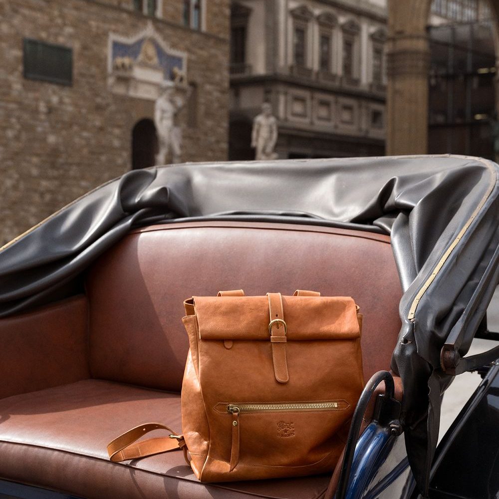 A backpack that speaks of travels and lands to explore, from jungles to cityscapes. It departs from Florence and journeys all over the world.